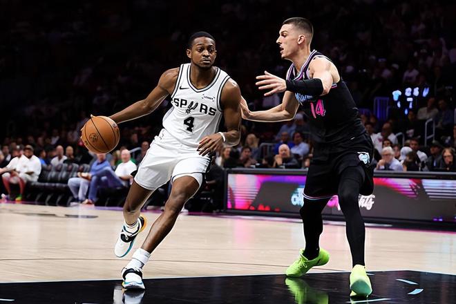 本场比赛中,马刺的先发后场大将达隆-福克斯(De'Aaron Fox)的表现还是相当不错的。福克斯全场出场24分43秒,投篮7中4,三分线外2中1,罚球2中2,以稳定的效率得到了11分4篮板4助攻2抢断的数据,还有1次失误和2次犯规,正负值则是达到了全场最高的+36。福克斯在进攻端控制了自己的出手次数,但是他还是通过各种方式拿下了不少分数,展现出了自己全面的得分能力,而且他也是具备不俗传球和组织能力的。除此之外,他在防守端的表现也是相当不错的,也是非常努力的。只是由于其他球员的表现足够出色,福克斯减少了自己的存在感,看起来他的数据也是因此比较一般的。不过总体来看,能够打出这么高的正负值,也能够说明很多东西了。