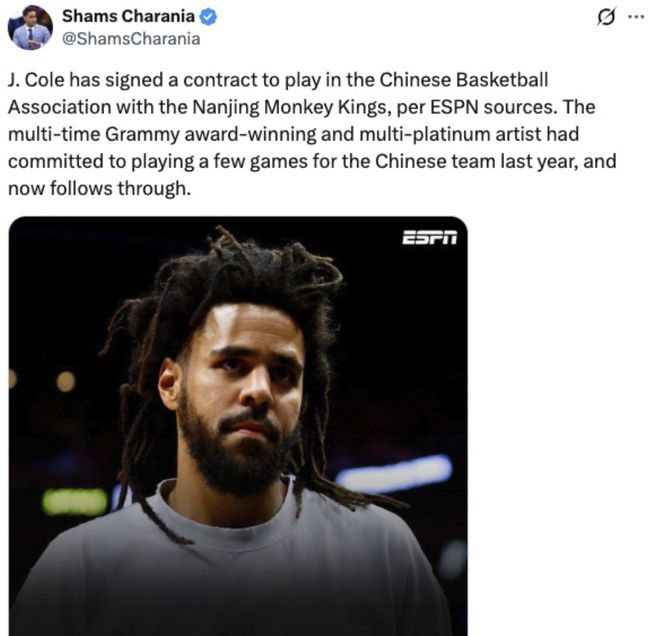 J-Cole是知名说唱歌手,他多次拿到格莱美奖,多次获得白金唱片认证,在美国乃至全世界都很有名气。据报道,同曦男篮的总经理王震在去年就跟J-Cole有过交流,当时后者就表达了希望出战中国职业篮球联赛的愿望。