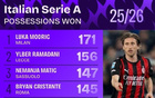 本赛季意甲夺回球权榜:莫德里奇171次第一,拉马达尼第二